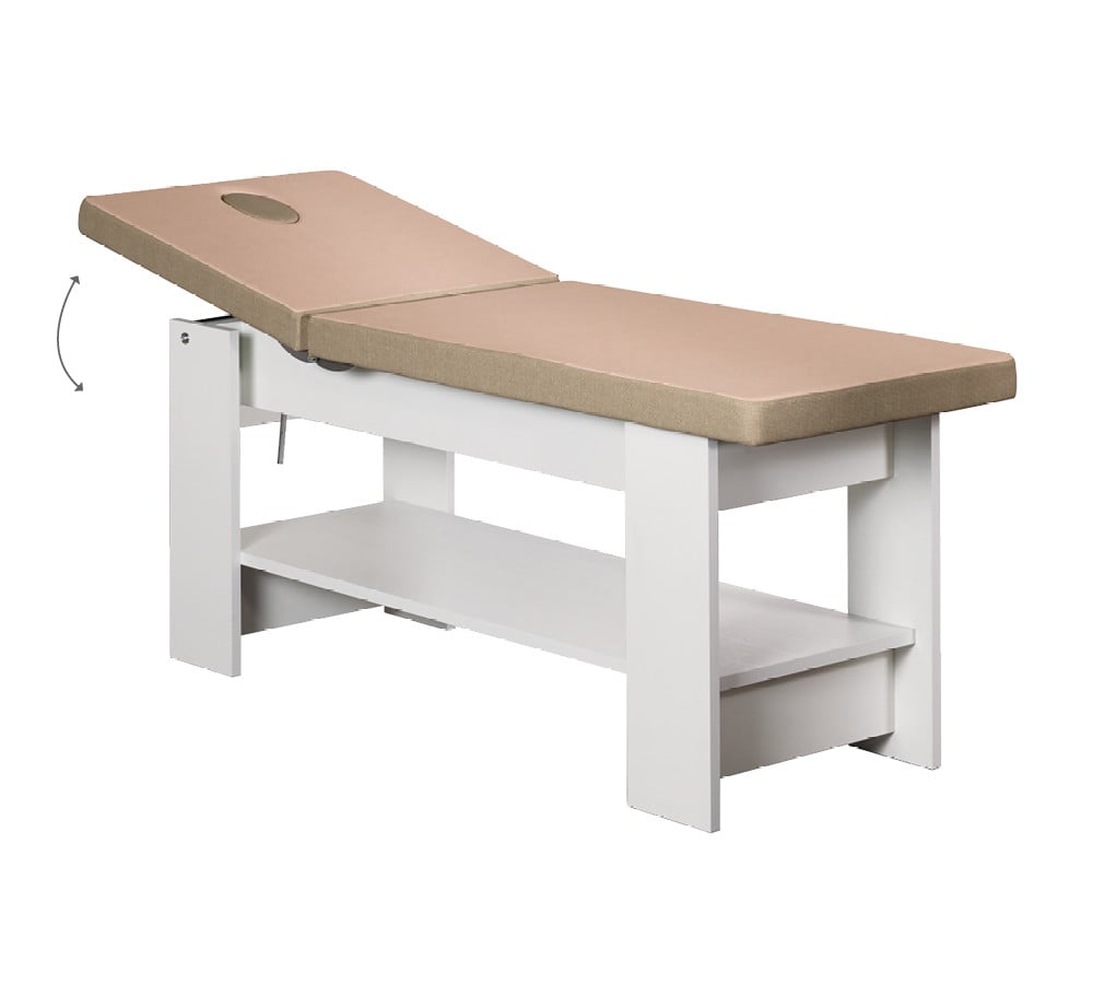 Impossible de résister au style minimaliste du lit de soins Karma: confortable, résistant et en parfaite harmonie avec le style zen de votre cabine. Le rembourrage épais du matelas, avec une articulation pour soulever le dossier et un trou refermable pour le visage, est extrêmement confortable. La structure en mélaminé frêne blanc, équipée d'une grande étagère de service, a été conçue pour garantir une solidité et une robustesse absolues. Karma est livré dans un kit d'assemblage. Support de rouleau en option.
